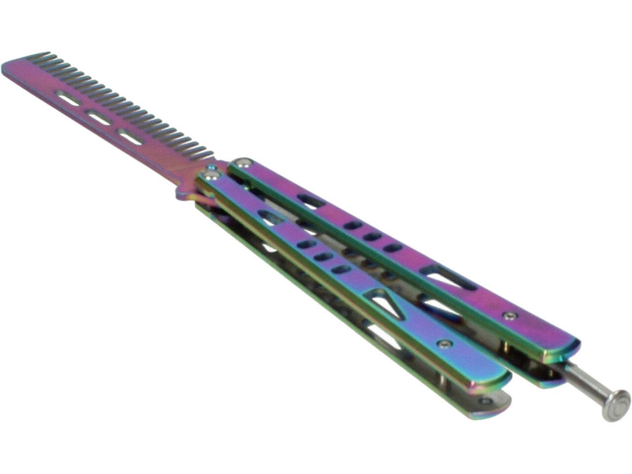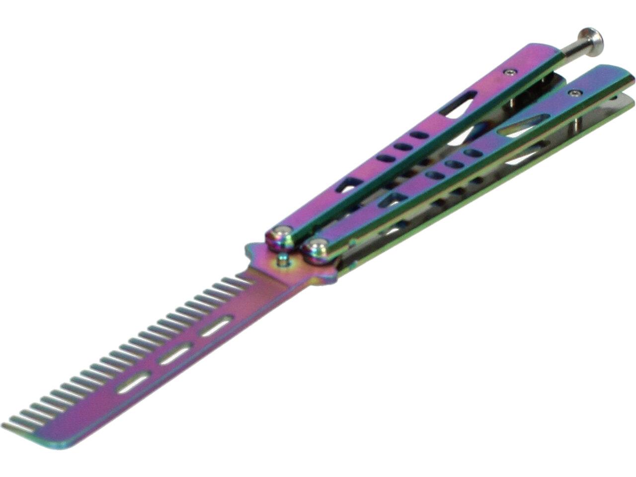 Tréninkový nůž motýlek - hřeben je ideální pro začátečníky při úpravě vousů a vlasů. Má délku 23 cm. Vyroben z nerezové oceli, díky které je odolný vůči poškození. Tento produkt je navržen jako motýlí nůž, ale s praktickým hřebenem jako hlavou namísto čepele nože. Motýlí hřeben lze použít jako tradiční hřeben do vlasů, ale také jako cvičný nůž, pokud se chcete naučit dělat různé triky. Ideální pro trénink vaší obratnosti! Výrobek funguje také jako dokonalá stresová hračka. Vyrobeno z oceli.