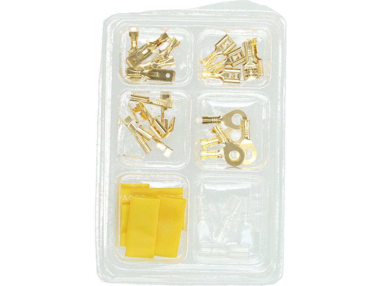 Sada obsahuje běžné konektory a očka pro spojování a propojování kabelů.
