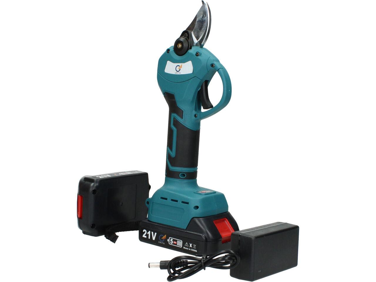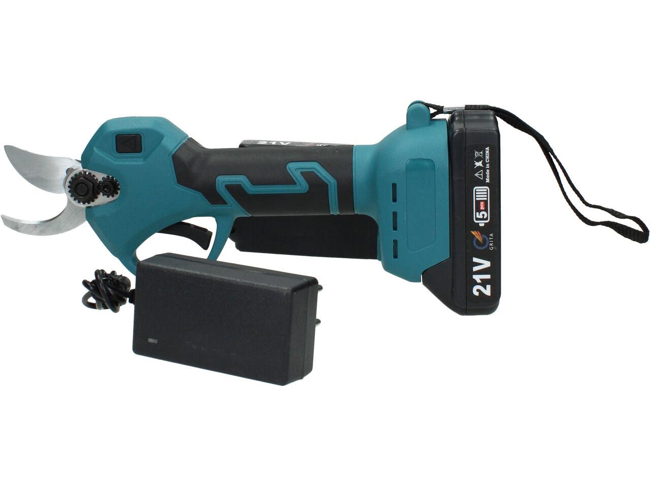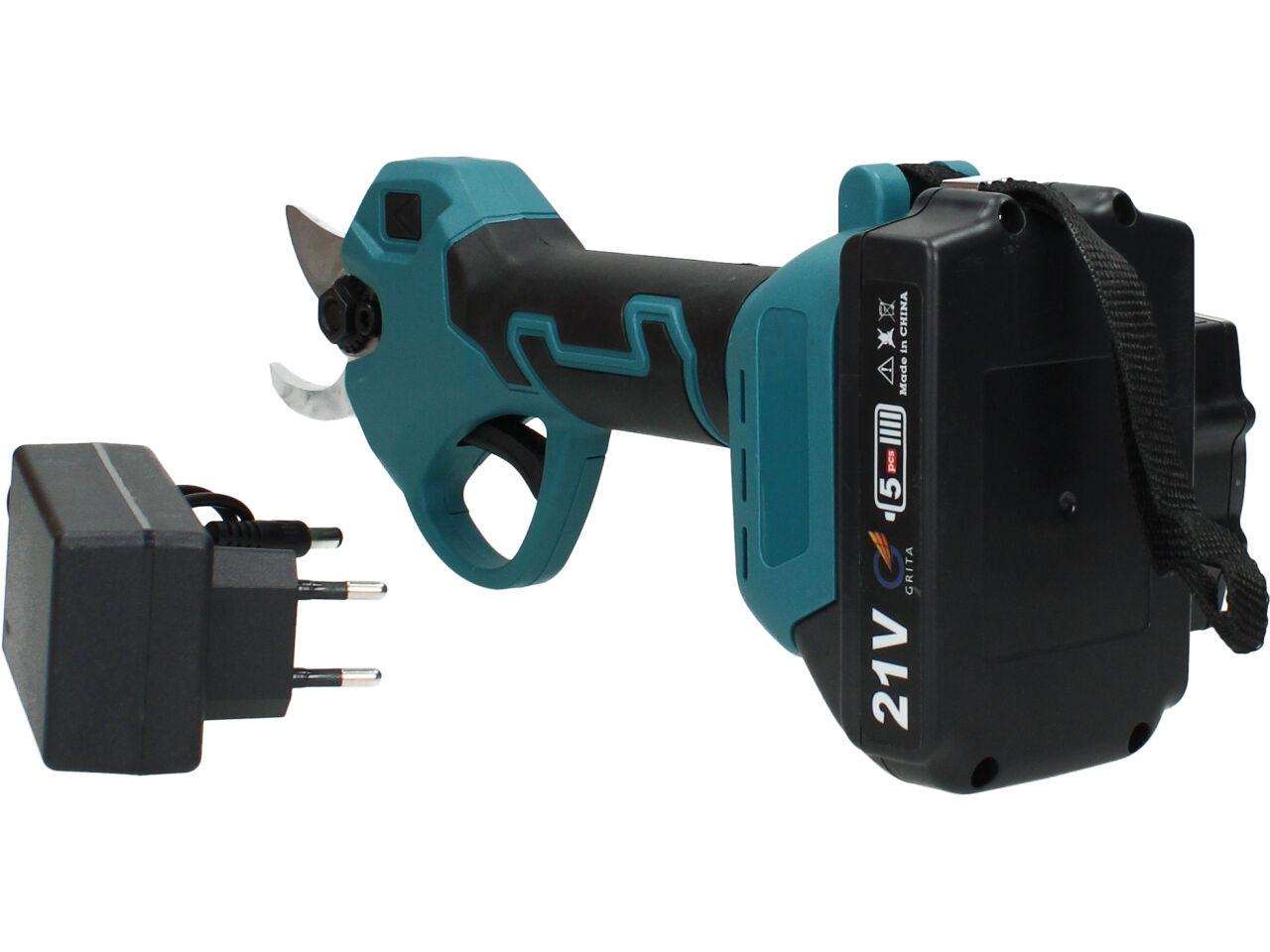 V sadě naleznete aku nůžky na stříhání větví, dva nabíjecí akumulátory 3000mAh včetně nabíječky, kufřík a příslušenství. Nůžky jsou vhodné pro štípání větví do průměru 33mm