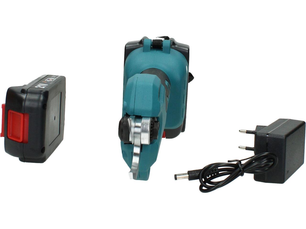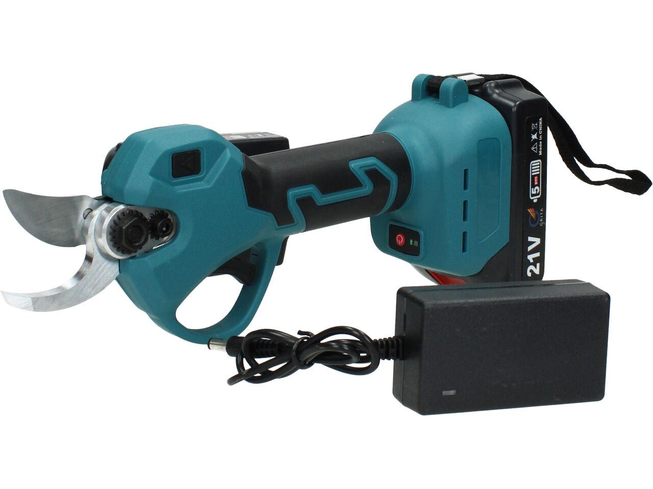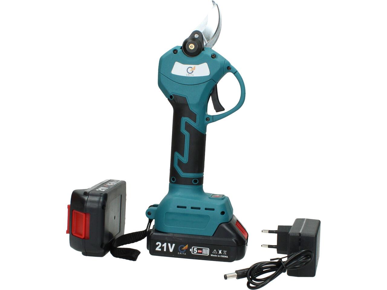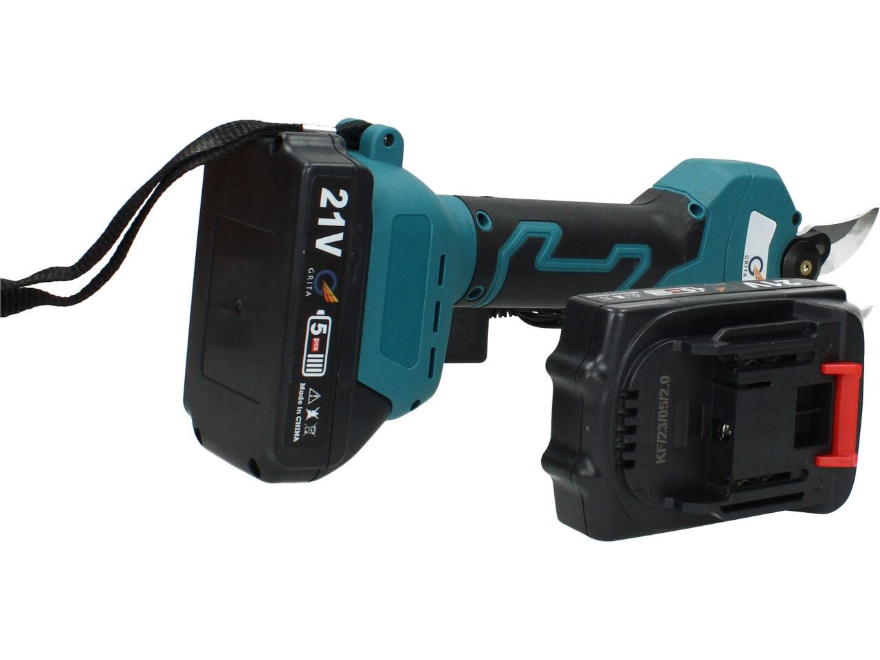 V sadě naleznete aku nůžky na stříhání větví, dva nabíjecí akumulátory 3000mAh včetně nabíječky, kufřík a příslušenství. Nůžky jsou vhodné pro štípání větví do průměru 33mm