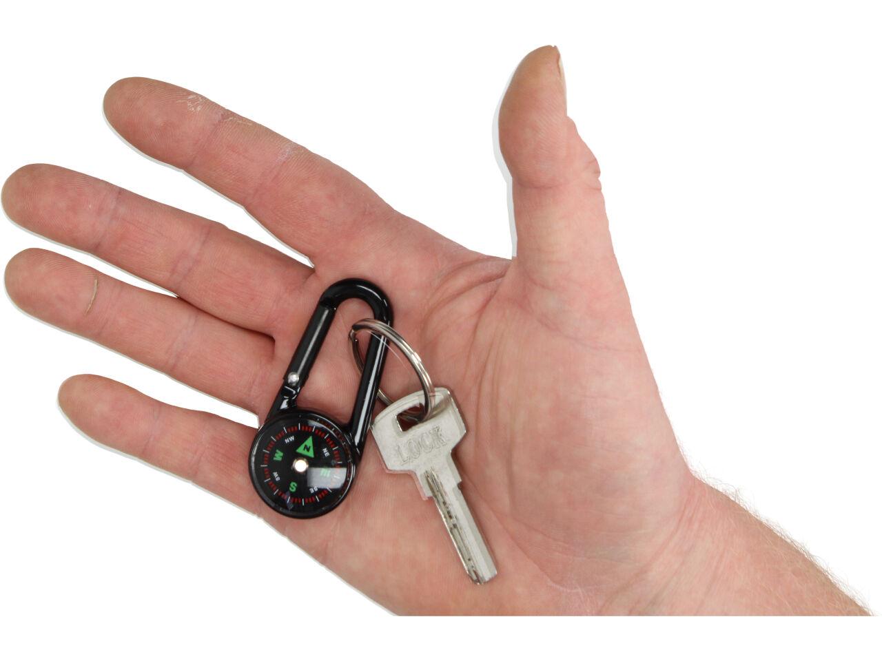 Kompas je vybaven praktickou karabinou, která umožňuje připevnit kompas na batoh nebo oblečení.
