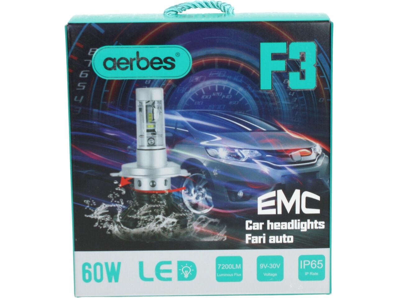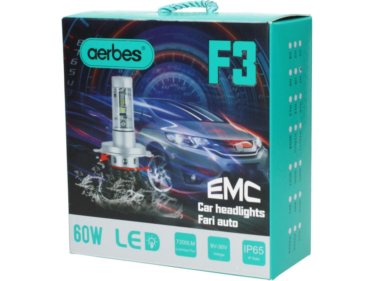 Led žárovky Aerbes H7 60W 6000K F3 7200Lm 2 kusy (studená bílá) do světlometu do auta na 12V, 24V (10V až 30V) jako náhrada za klasickou nevýkonou žárovku H7.