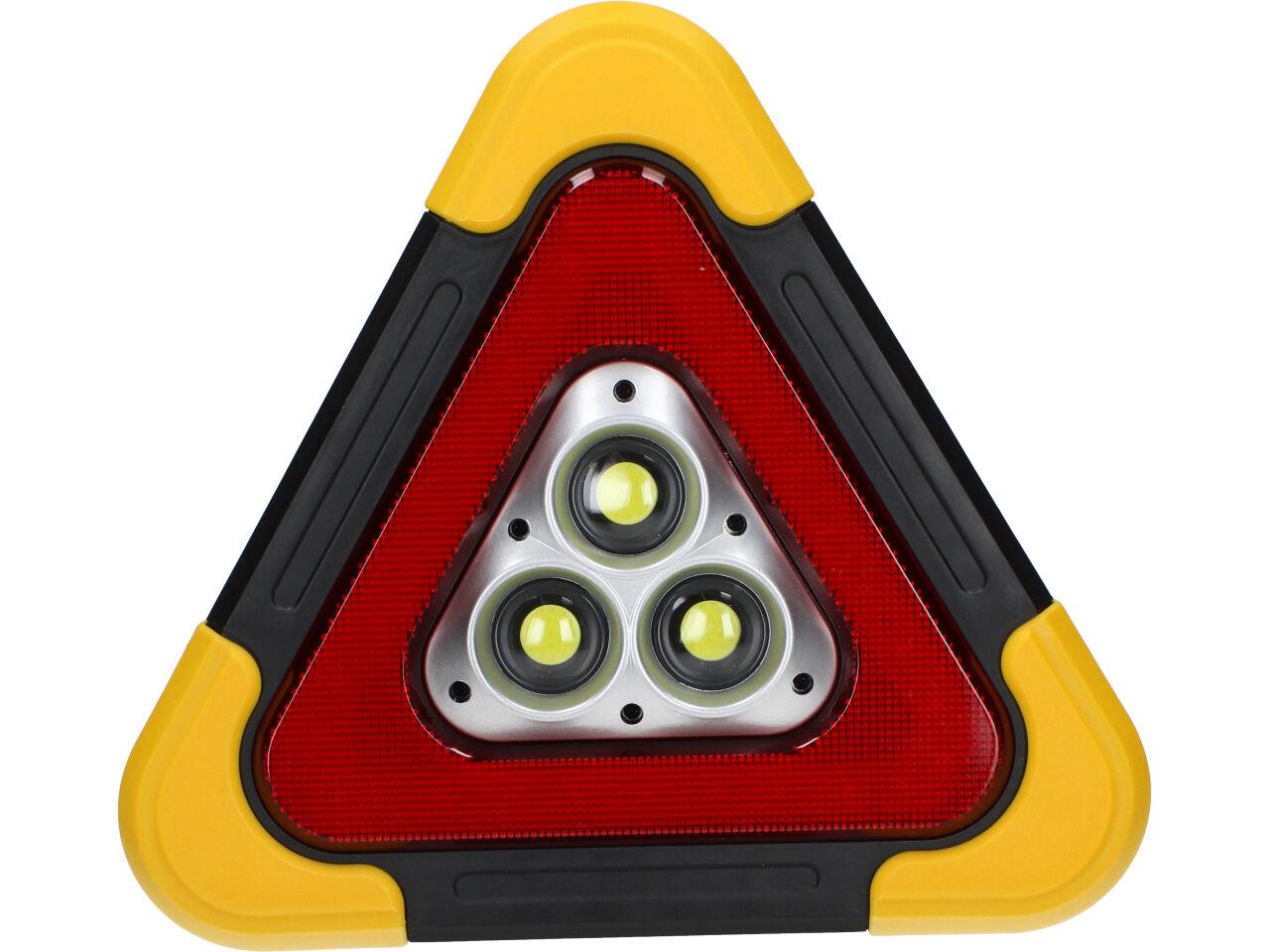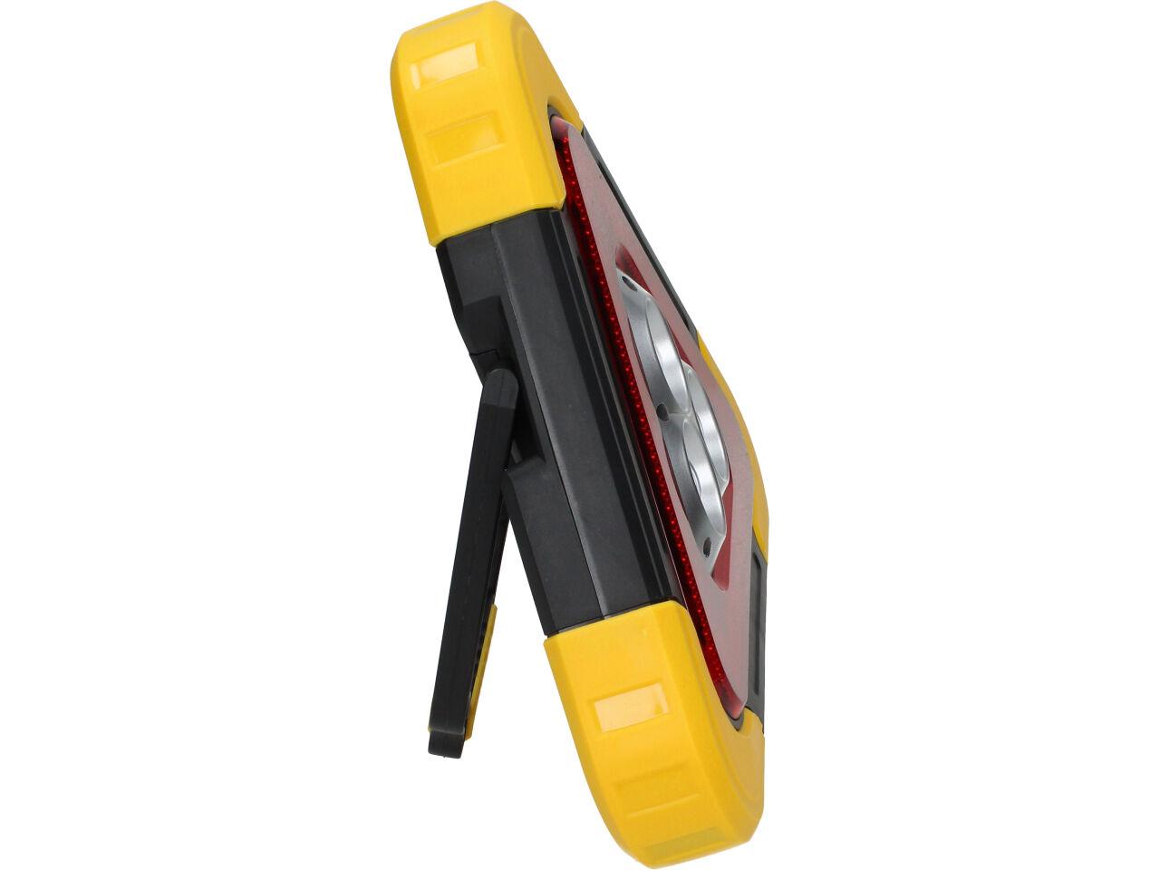 Varovné červené světlo s 42 COB LEDkami nabízí tři různé módy blikání, zvyšující viditelnost ve dne i v noci. Trojúhelník má vyklápěcí stojánek, díky kterému bezpčně stojí na silnici nebo na střeše auta.