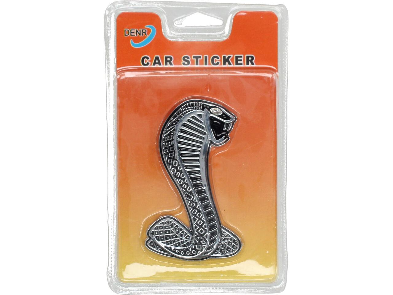 Kovová samolepka kobra 9cm x 6cm. Tahle parádní nálepka kovová kobra vypadá naprosto luxusně a vylepší vzhled vašeho auta. Kvalitní nálepka o rozměrech 9cm x 6cm je opatřena oboustranou lepící páskou. Předností této samolepky je fakt, že vydrží podstatně delší dobu než nálepka klasická. Na kvalitní kovovou nálepku poskytujeme záruku 24 měsíců. Prohlédněte si i další kovové samolepky z naší široké nabídky.