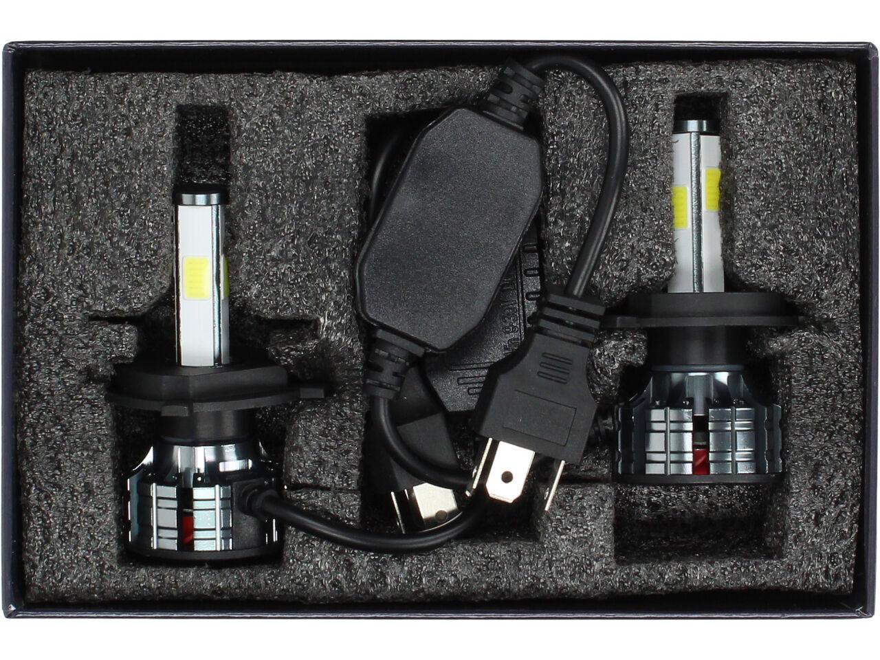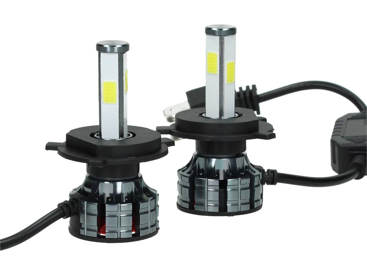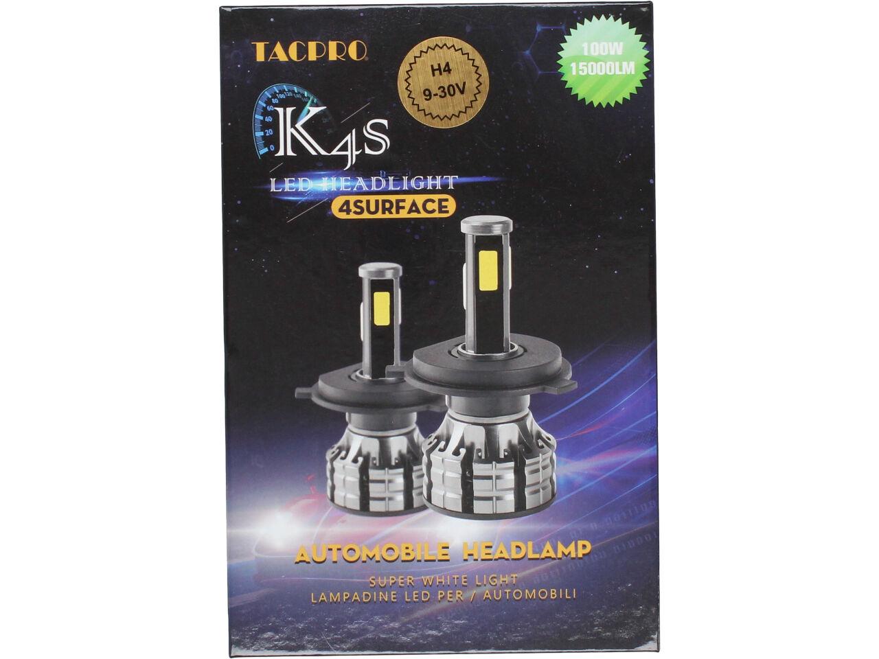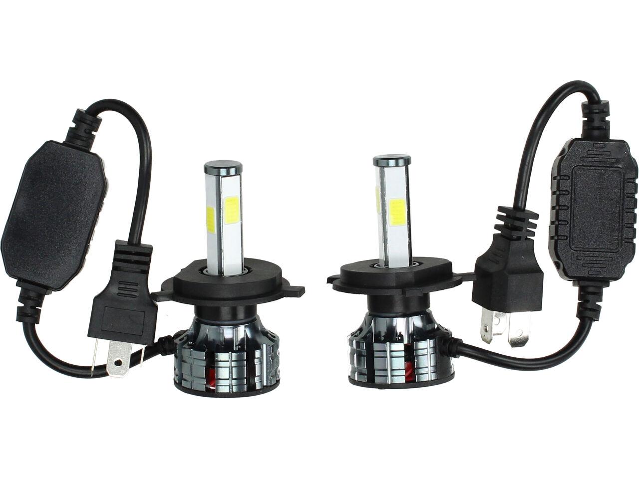 Velice odolná LED H4 model K4S žárovka s barvou světla 6000K (studená bílá) sada 2 kusy do světlometu do auta na 12V, 24V jako náhrada za klasickou nevýkonou žárovku H4.