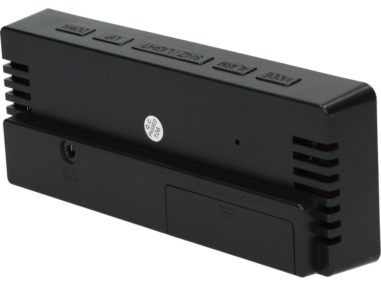 Tento multifunkční stolní budík má zabudovaný teploměr a automaticky nastavitelný jas dle aktuálního času.