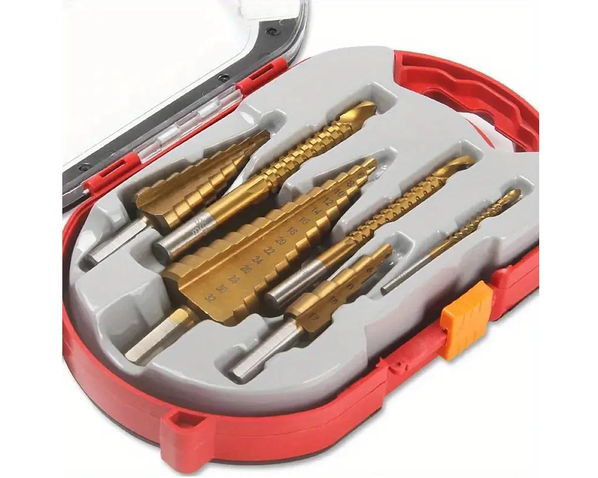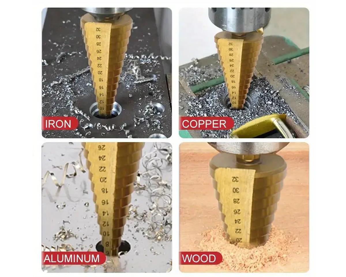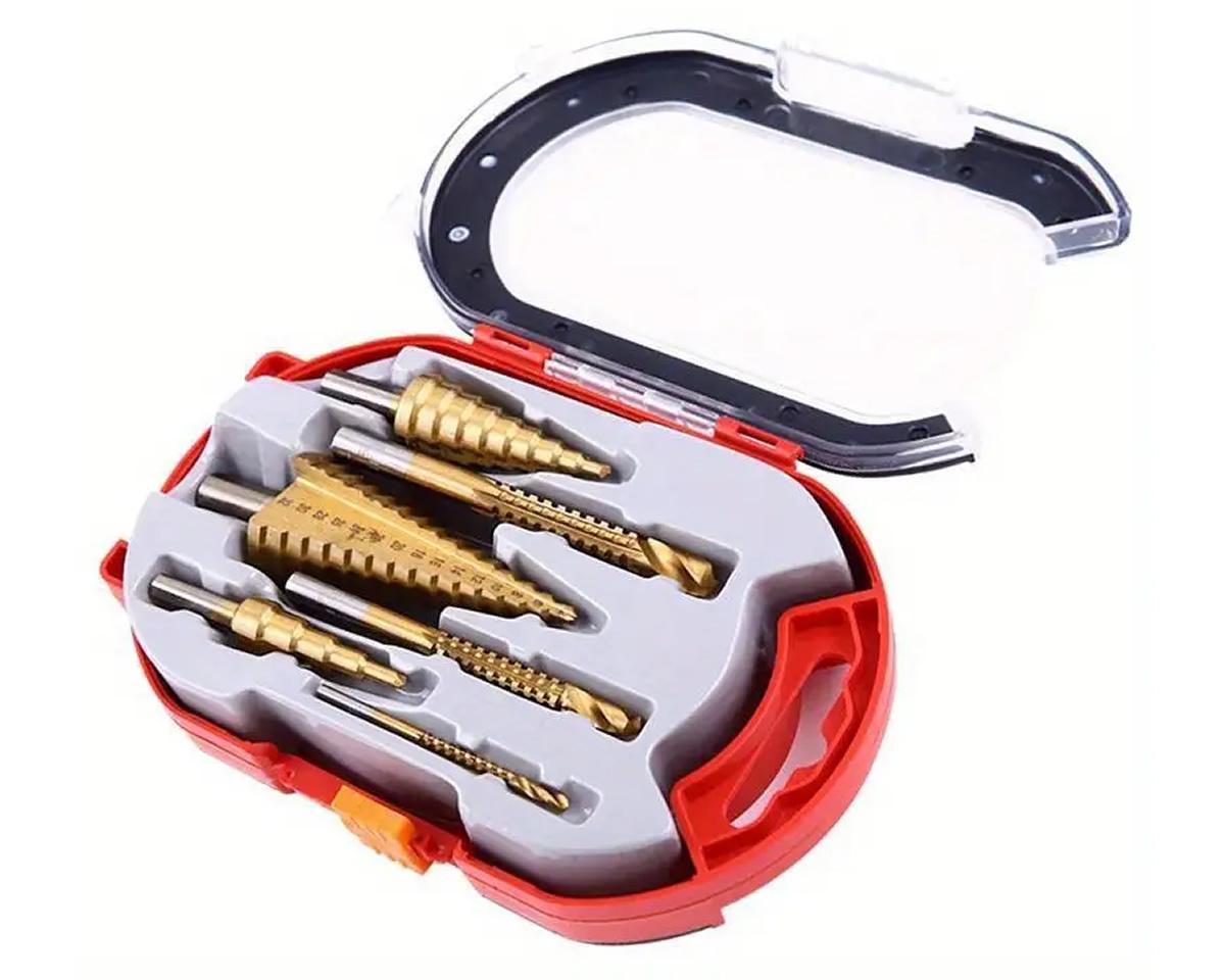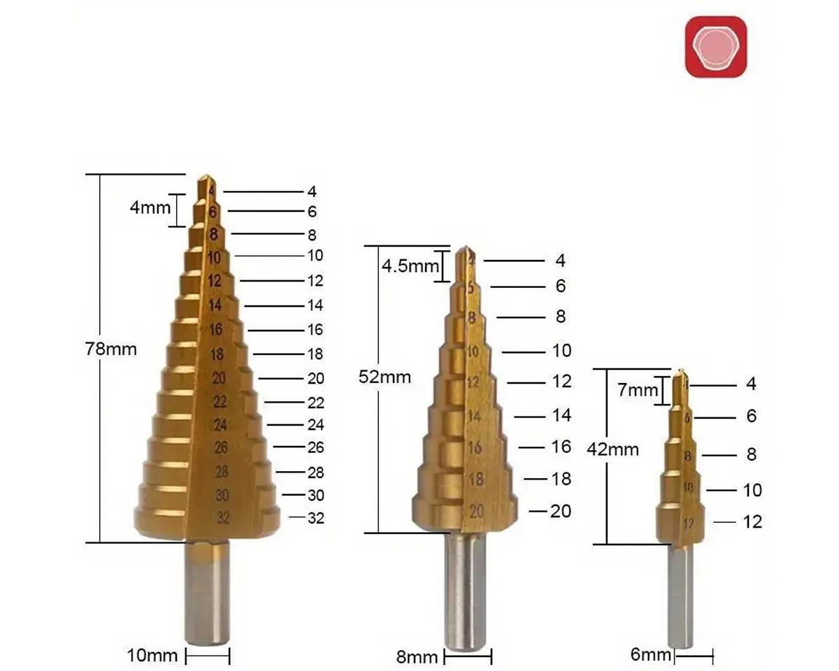 3/6ks Sada Stupňovitých Vrtáků Sada Pil, HSS Ocel Titan 4-12/20/32 Mm Kuželové Osazené Bity Z Tvrdokovu, Dřevoobráběcí Nástroje Sada Otočných Ozubených Vrtáků