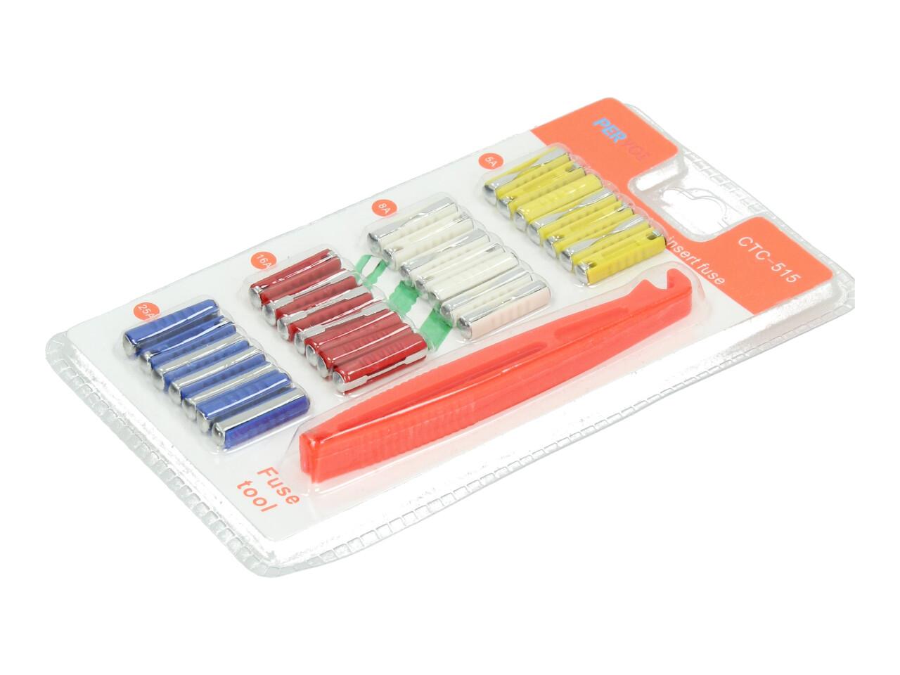 Dnes již těžko dostupnější pojistky převážně do starších automobilů, zemědělských strojů nebo malých nákladních vozů jako je napčíklad Multicar. Balení obsahuje 28 kusů keramických pojistek a plastové kleštičky pro pohodlnou manipulaci s nimi.