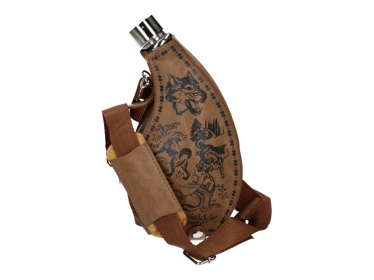 Placatka přes rameno je ideální na delší cesty, na tůry, čundry, festivaly i pochody. Placatka je chráněna v pevném koženém pouzdře, které je vybaveno dlouhým uchem přes rameno. Vyrobeno z nerezového pevného kvalitního materiálu a na vrchu placatky je klasické šroubovací víčko, aby se vám vás oblíbený nápoj nevylil. Uchová na delší dobu i teplý čaj, svařák, grog, atd.