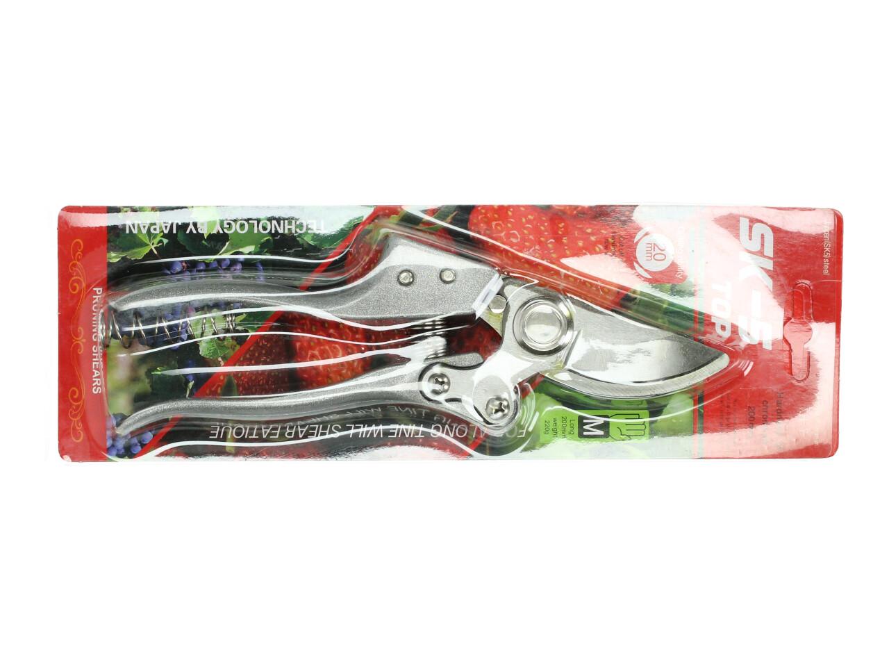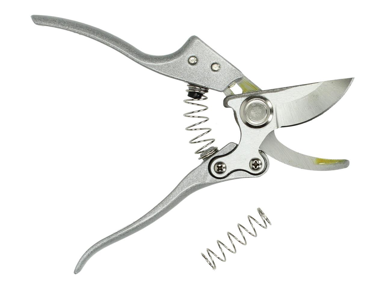 Střihne větve do 2 cm, kovové tělo, pojistka proti samovolnému otevření. Dodáváno s náhradní pružinou.