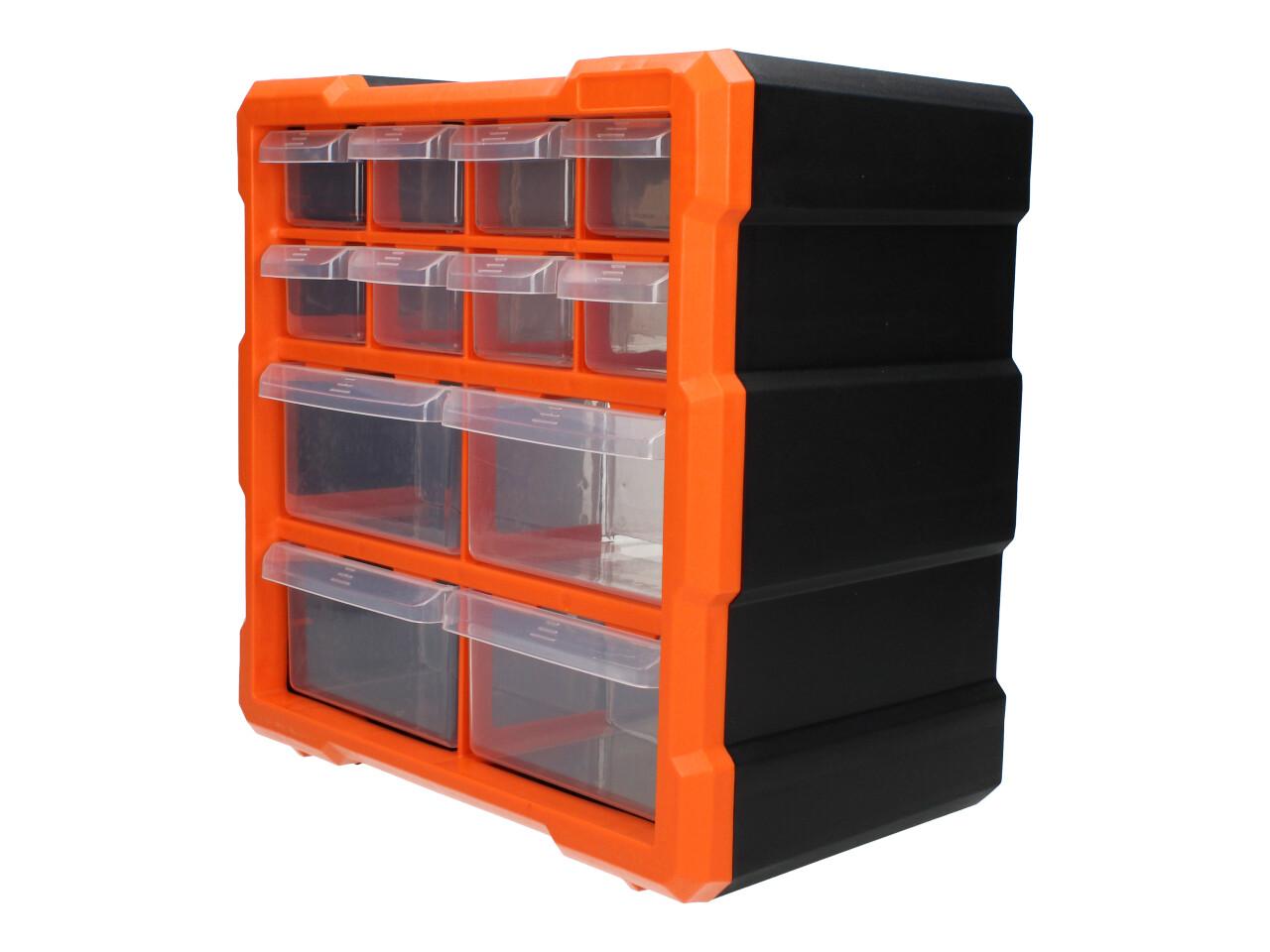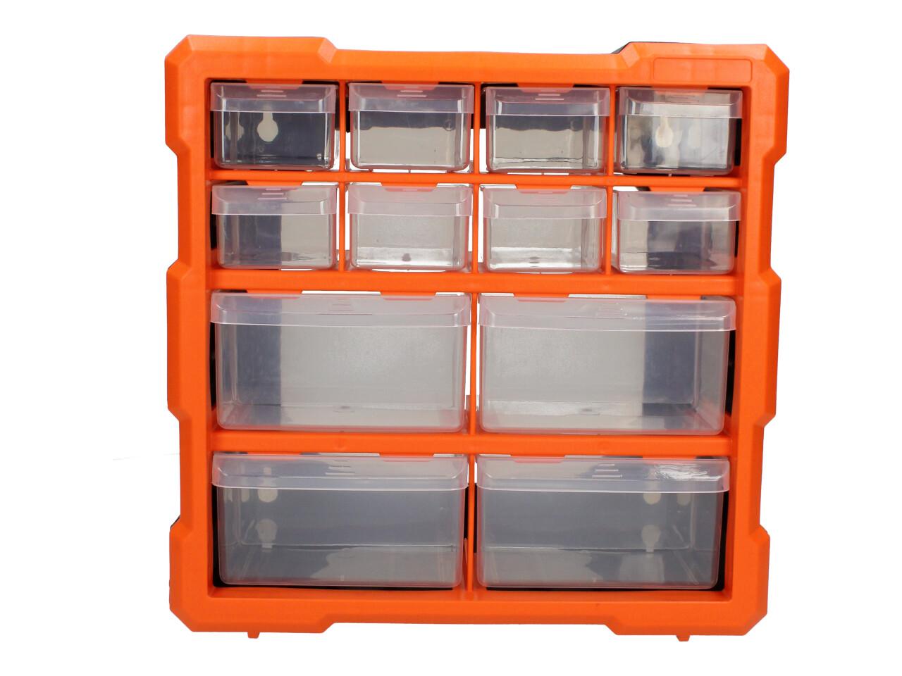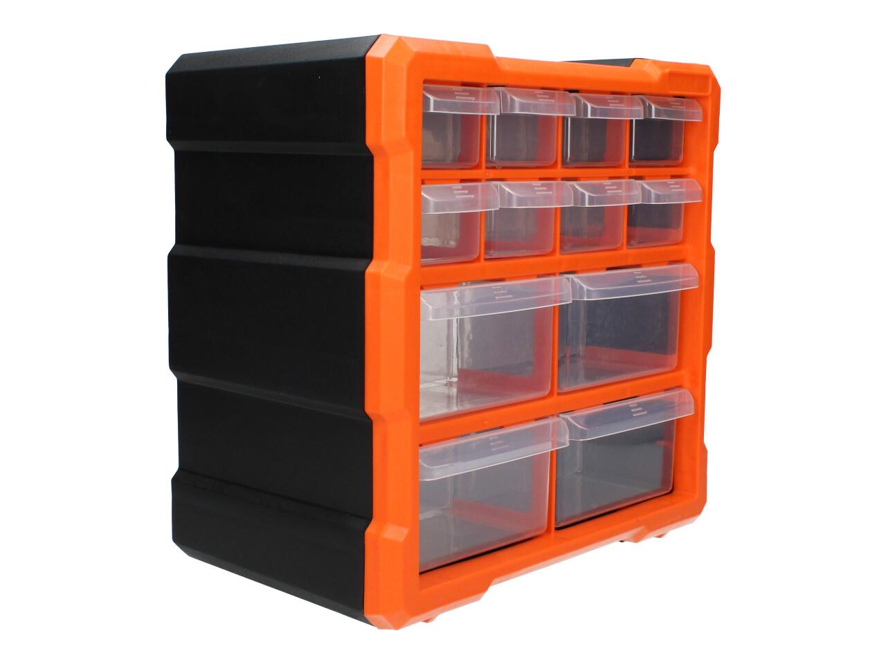 Praktický úložný box z odolného plastu. Organizér je možné zavěsit na zeď pomocí otvorů pro šrouby na zadní straně boxu.