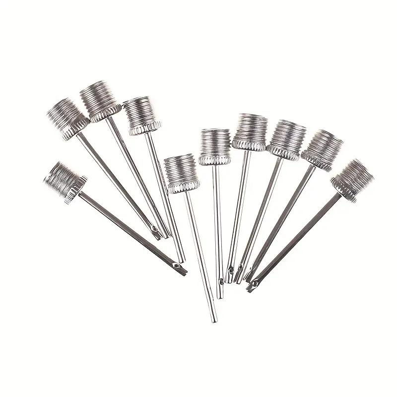 Praktická sada 10 náhradních jehel pro nafukování sportovních míčů. Jehly jsou vyrobeny z odolné nerezové oceli a jsou kompatibilní s většinou standardních pumpiček. Ideální pro fotbalové, basketbalové, volejbalové a další nafukovací míče.