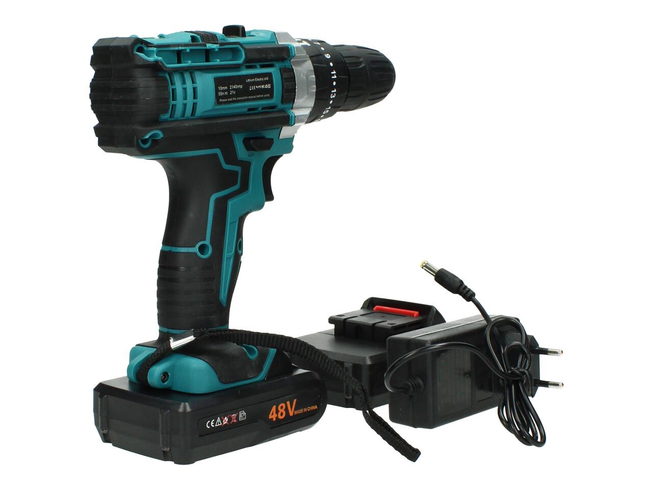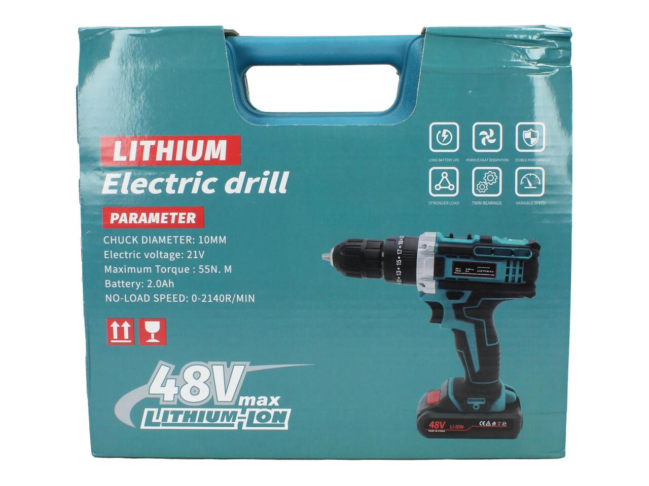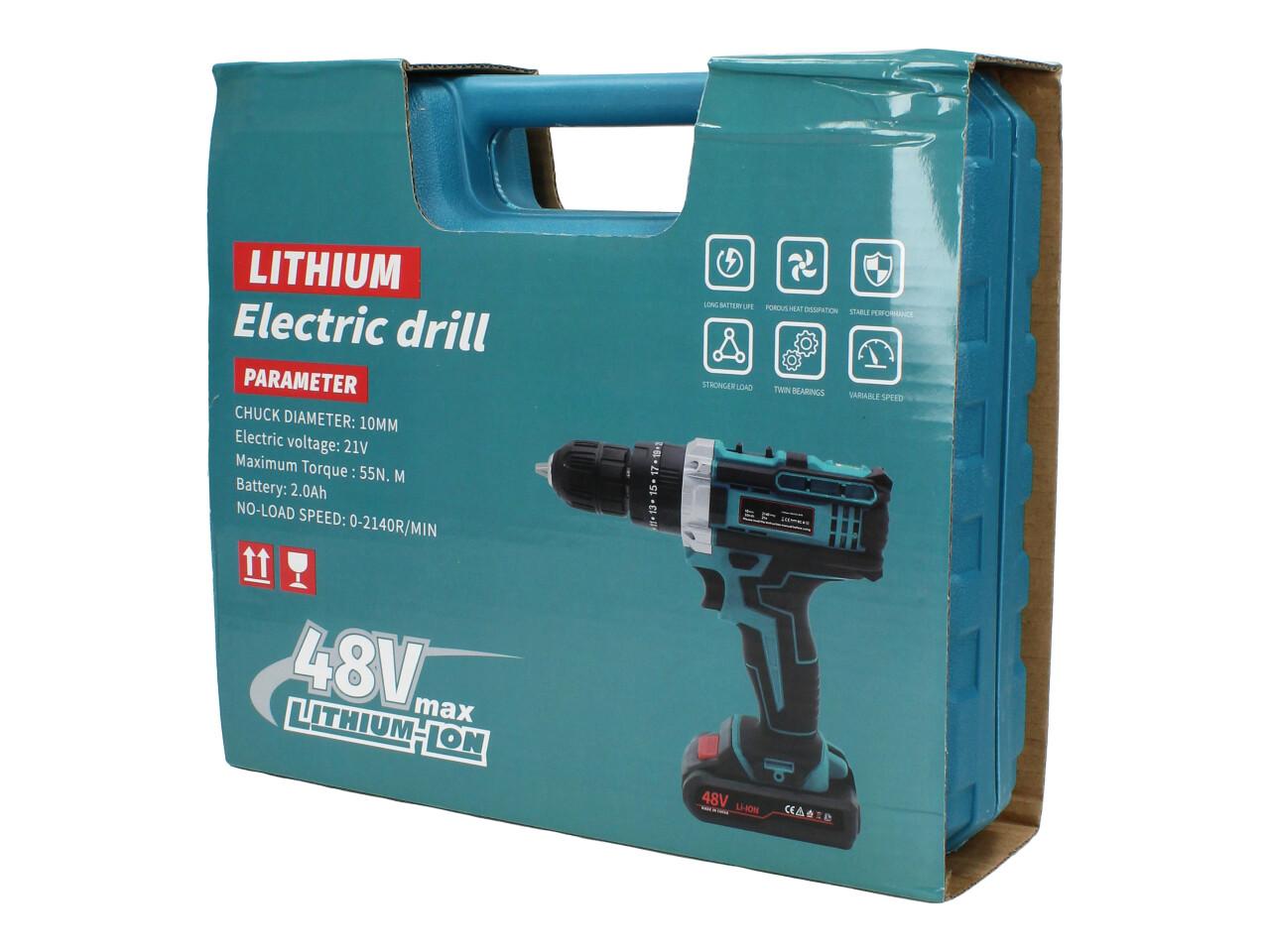 Aku vrtačka 48V je výkonný nástroj ideální pro vrtání a šroubování v domácnosti i na stavbě. Díky vysokému krouticímu momentu 55Nm a rychlosti až 2140 otáček za minutu poskytuje spolehlivý výkon i při náročných úkolech. Součástí balení je lithium-iontová baterie s kapacitou 2.0Ah, která zajistí dlouhou výdrž a efektivní provoz.