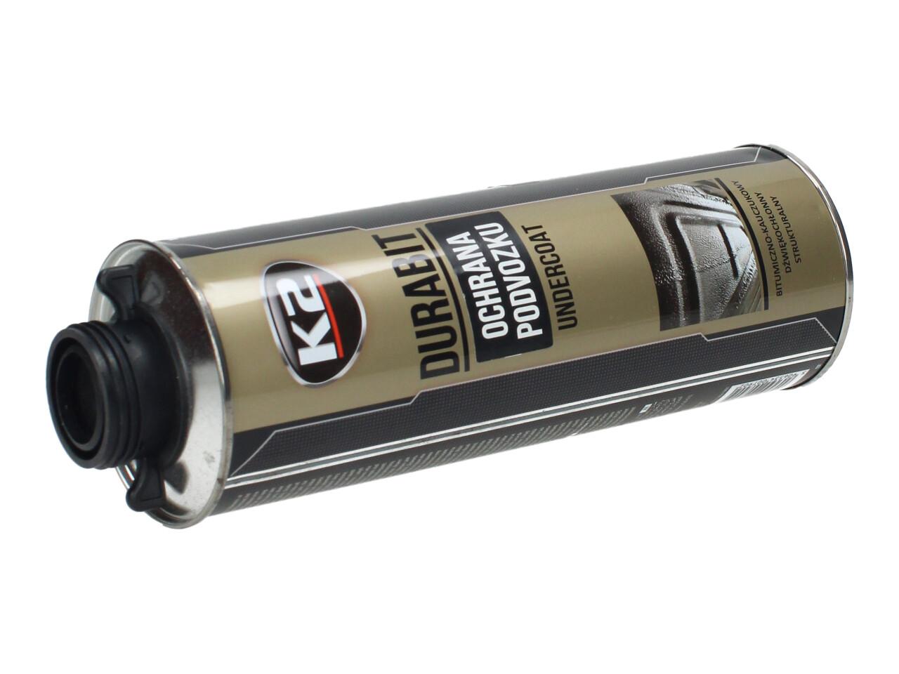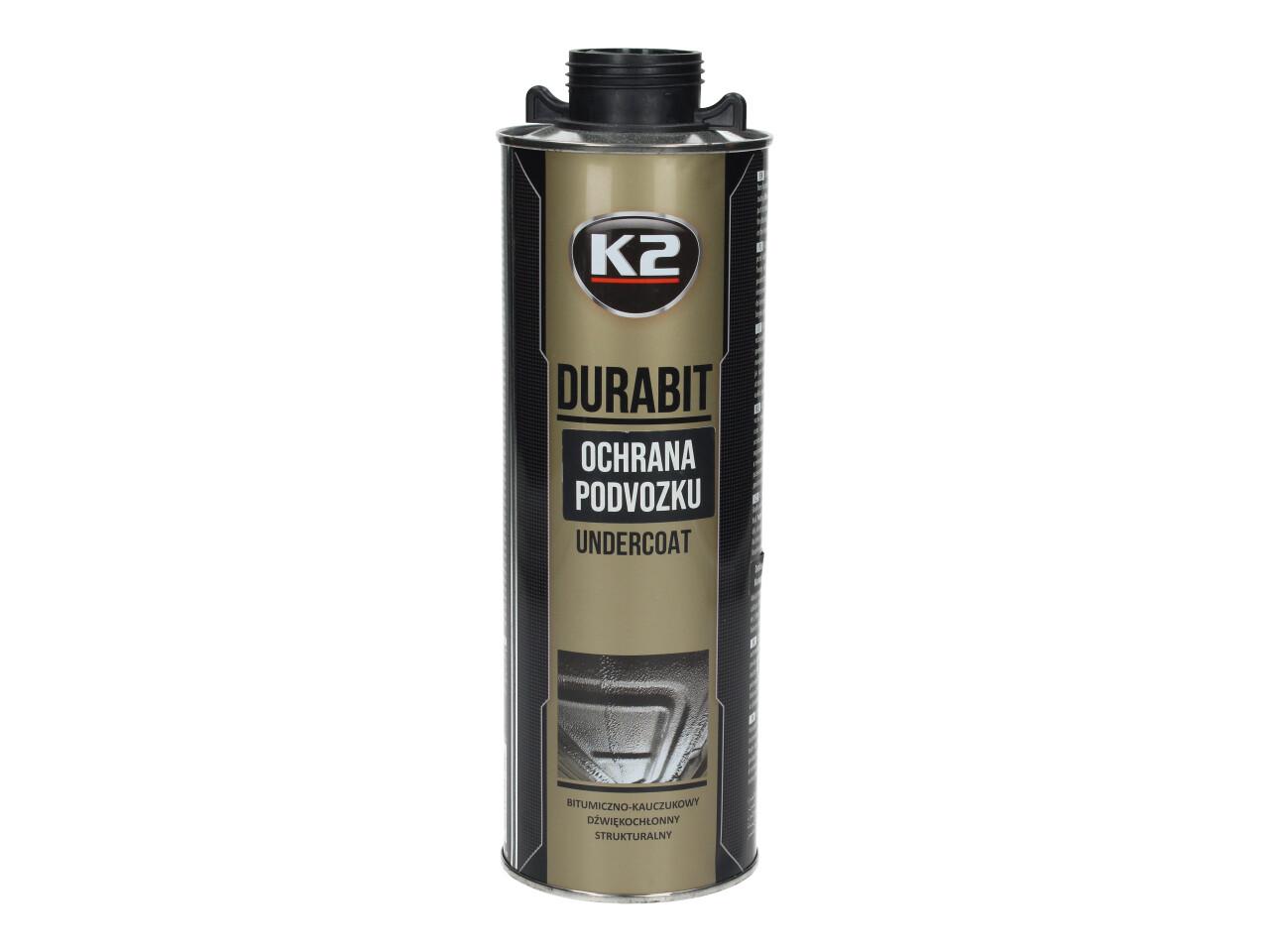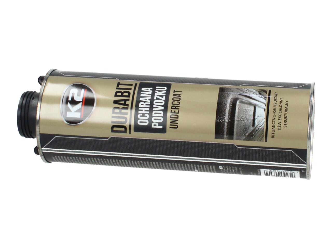 K2 DURABIT 1 L je odolný a účinný prostředek na údržbu podvozku, prahů a rámů vozidel, určený k nanášení pistolí nebo štětcem. Na bázi bitumenové pryže vytváří pružnou a odolnou vrstvu, která chrání povrch před nárazy kamínků, vodou, solí i korozí. Současně tlumí hluk a vibrace, čímž zvyšuje komfort jízdy a prodlužuje životnost vozu.