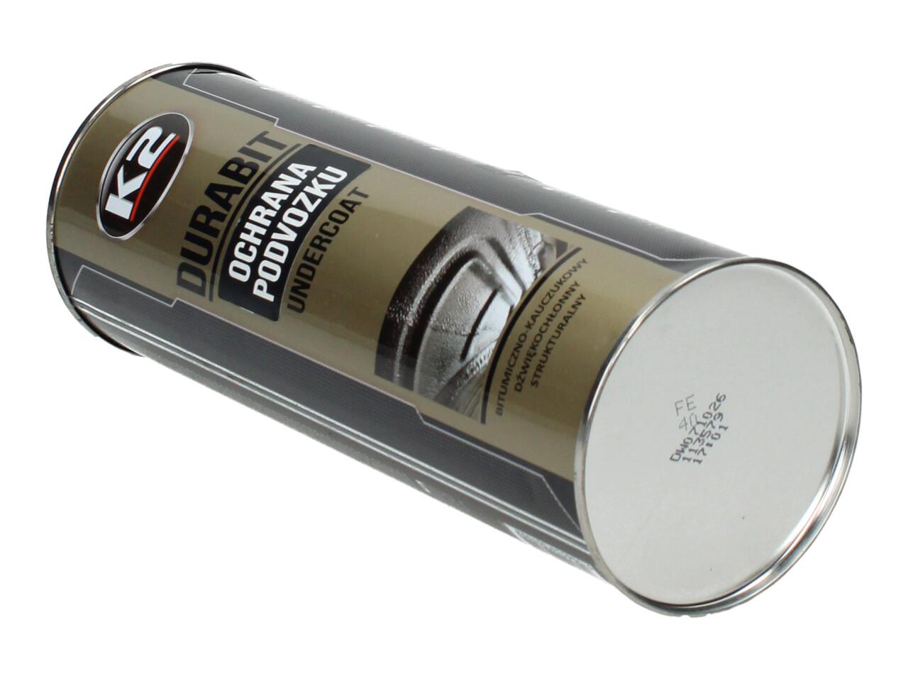 Po zaschnutí vytváří K2 DURABIT pevný, voděodolný film s výraznou strukturou. Je ideální pro ošetření prahů, podběhů i spodních částí karoserie osobních i užitkových vozidel. Chrání nejen proti vlhkosti a soli, ale i proti mechanickému poškození způsobenému odletujícími kamínky.