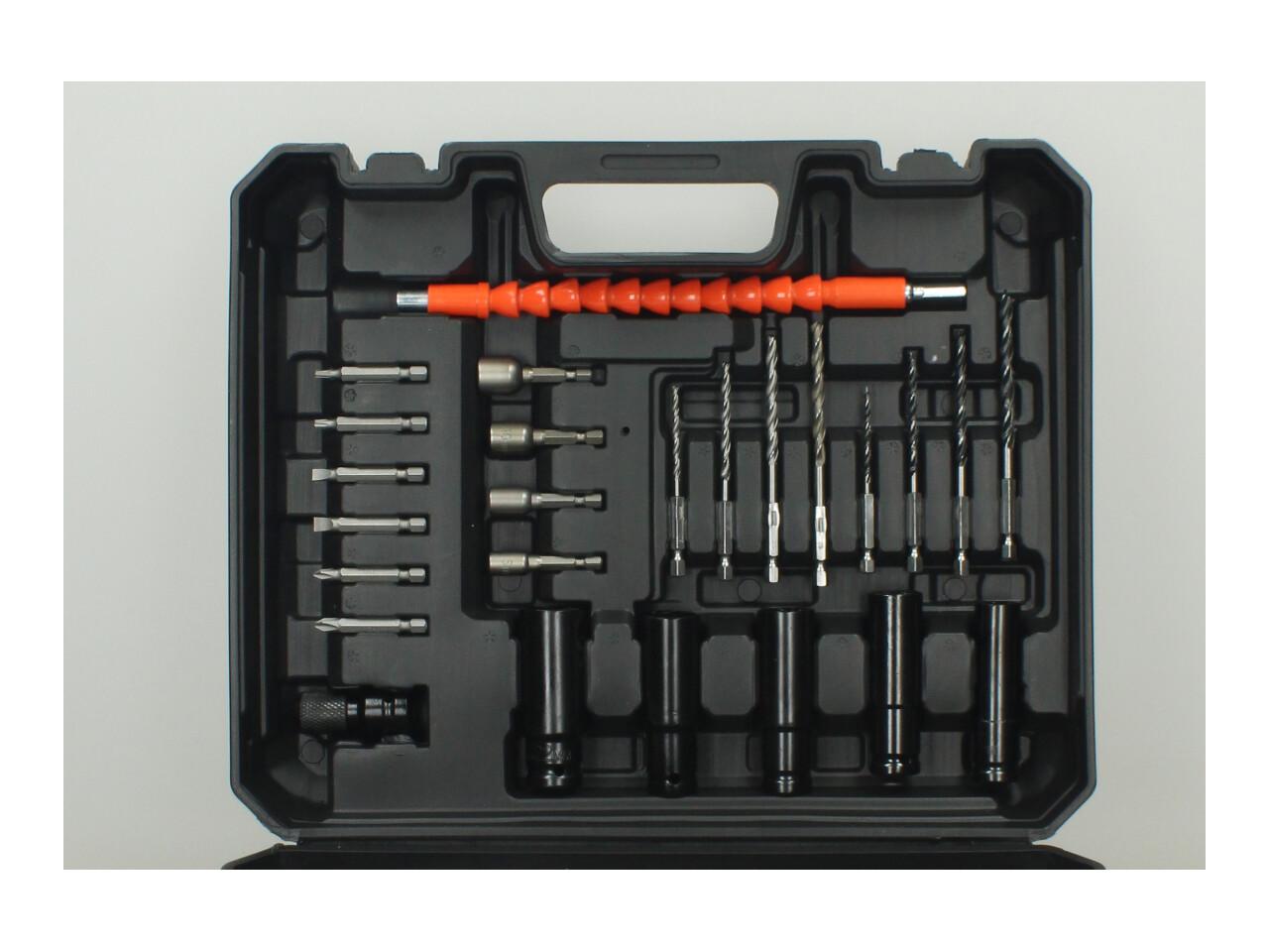 Aku rázový utahovák 390 Nm včetně 2 kusů 2500mAh aku, nabíječky a bohatého příslušenství v platovém kufříku