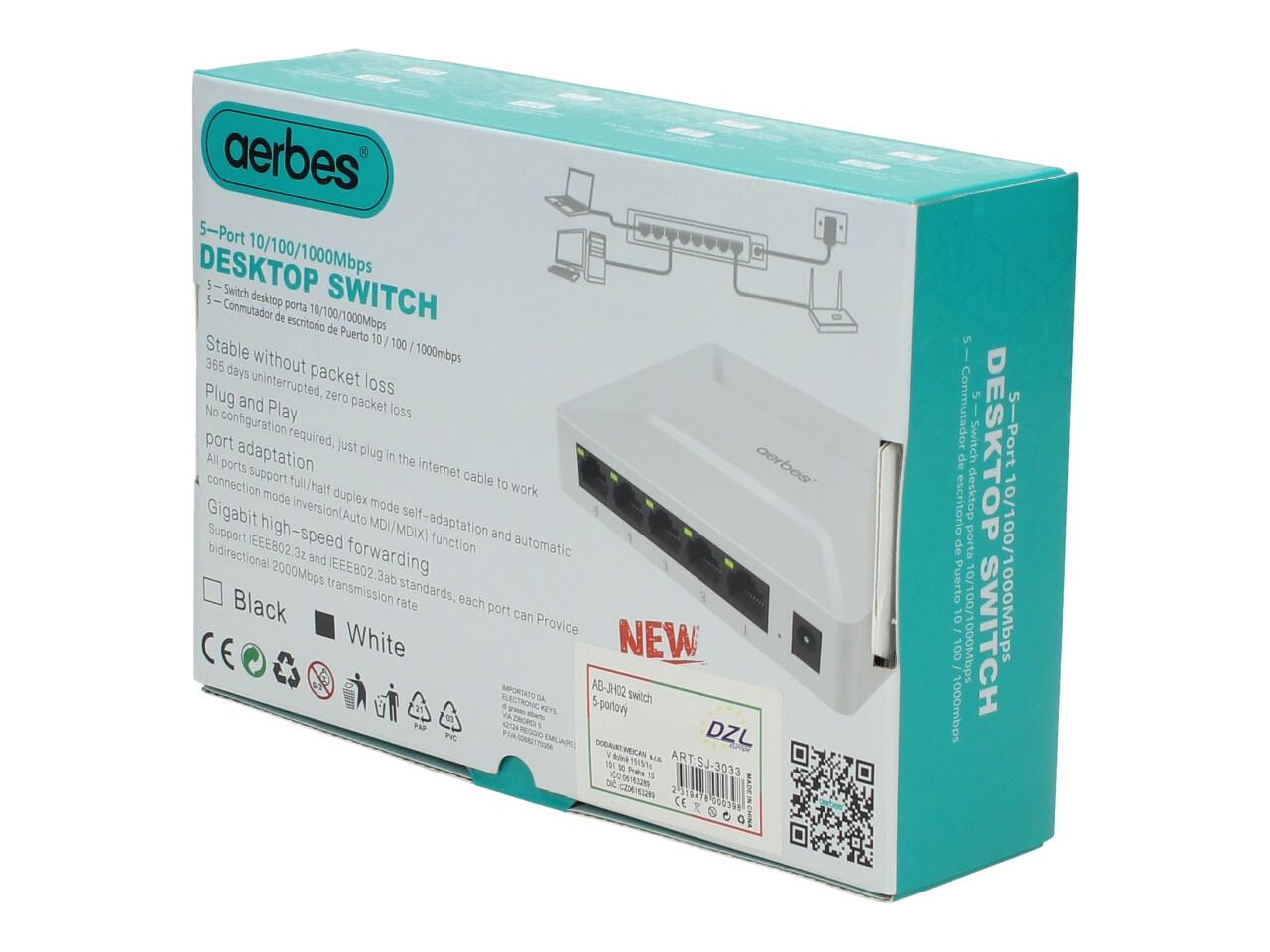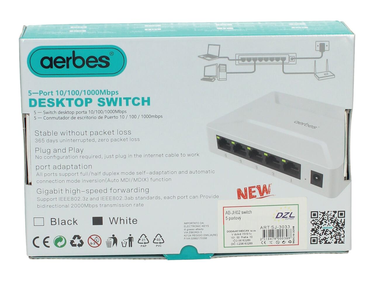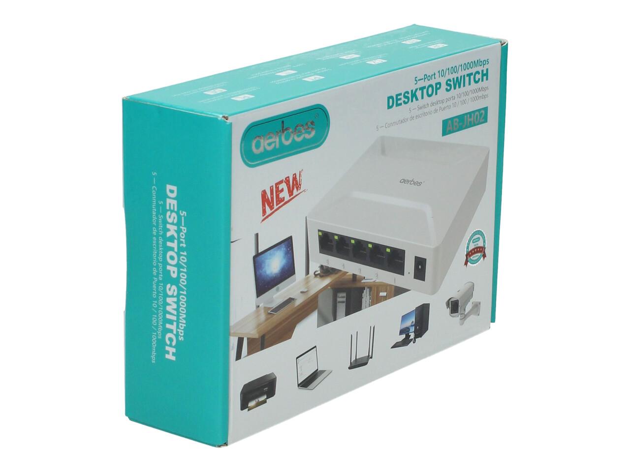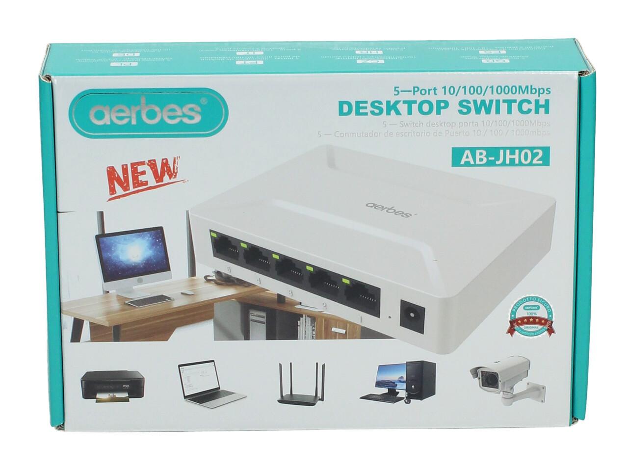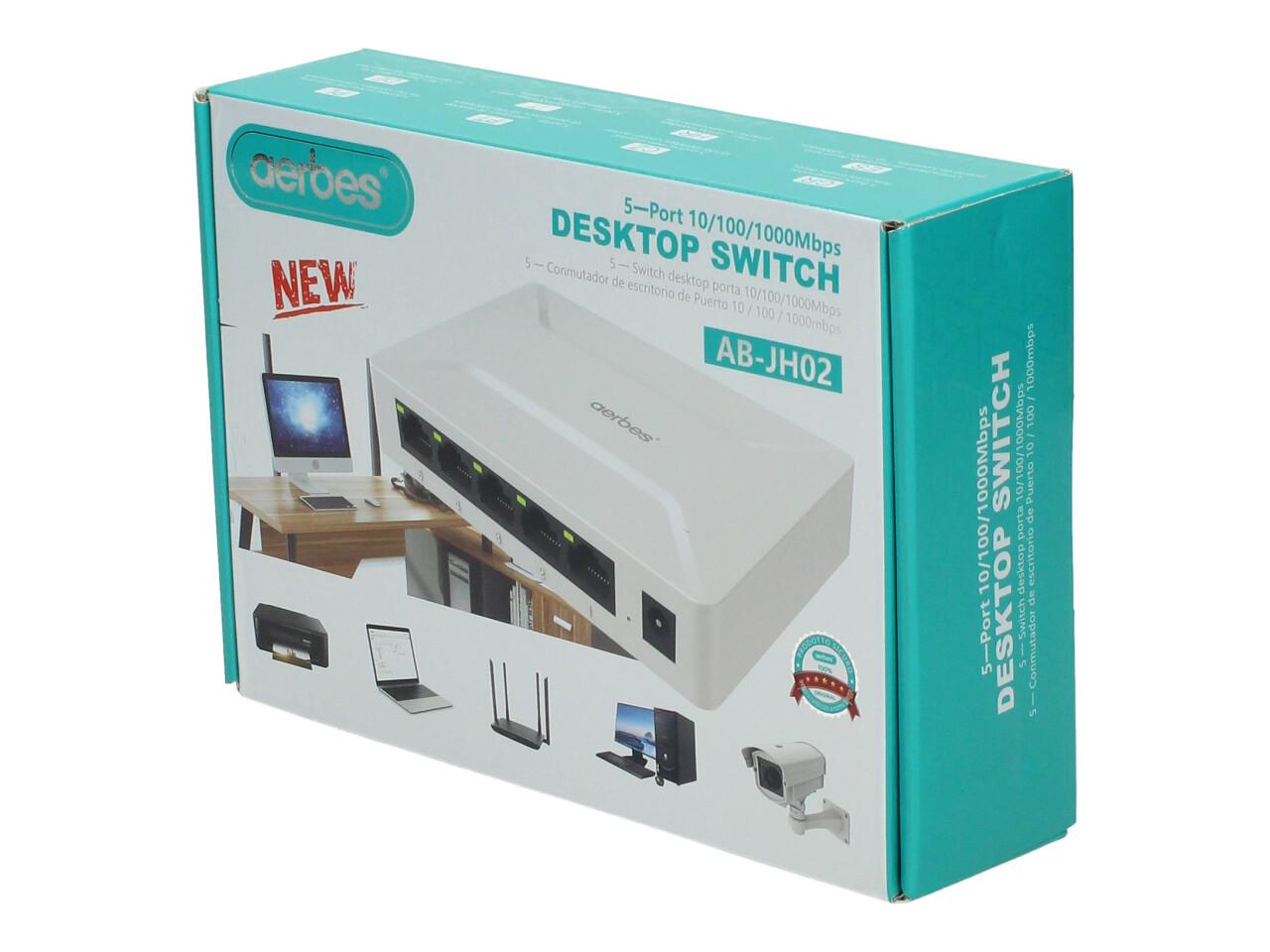 Kompaktní stolní switch Aerbes AB-JH02 je jednoduché a spolehlivé řešení pro rozšíření domácí nebo kancelářské sítě. Díky automatickému vyjednání rychlosti se bez problémů přizpůsobí zařízení s různým výkonem a nabízí stabilní provoz bez složitého nastavování. Instalace je plug & play – stačí zapojit a funguje.